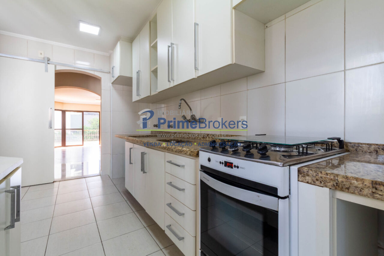 Suíte com varanda, Sala ampla com varanda de frente, Piso de madeira, Lavabo, Cozinha com armários planejados, Área de serviço completa com quarto e banheiro, Dependência de funcionário, Ar condicionado nos quartos, 2 vagas determinadas, Vista para cidade