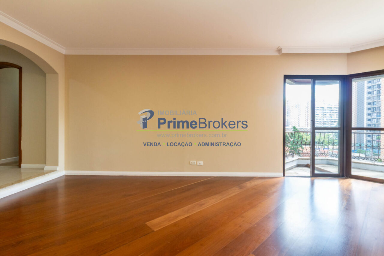 Ótimo apartamento no Campo Belo com 159m² super bem distribuídos! São 3 dormitórios com ar condicionado (1 suíte com varanda), banheiro social, sala ampla com varanda de frente, piso de madeira e lavabo. Cozinha com armários planejados, área de serviço completa com quarto e banheiro de funcionário. 2 vagas determinadas na garagem. Condomínio com gerador que atende os apartamentos e portaria presencial.