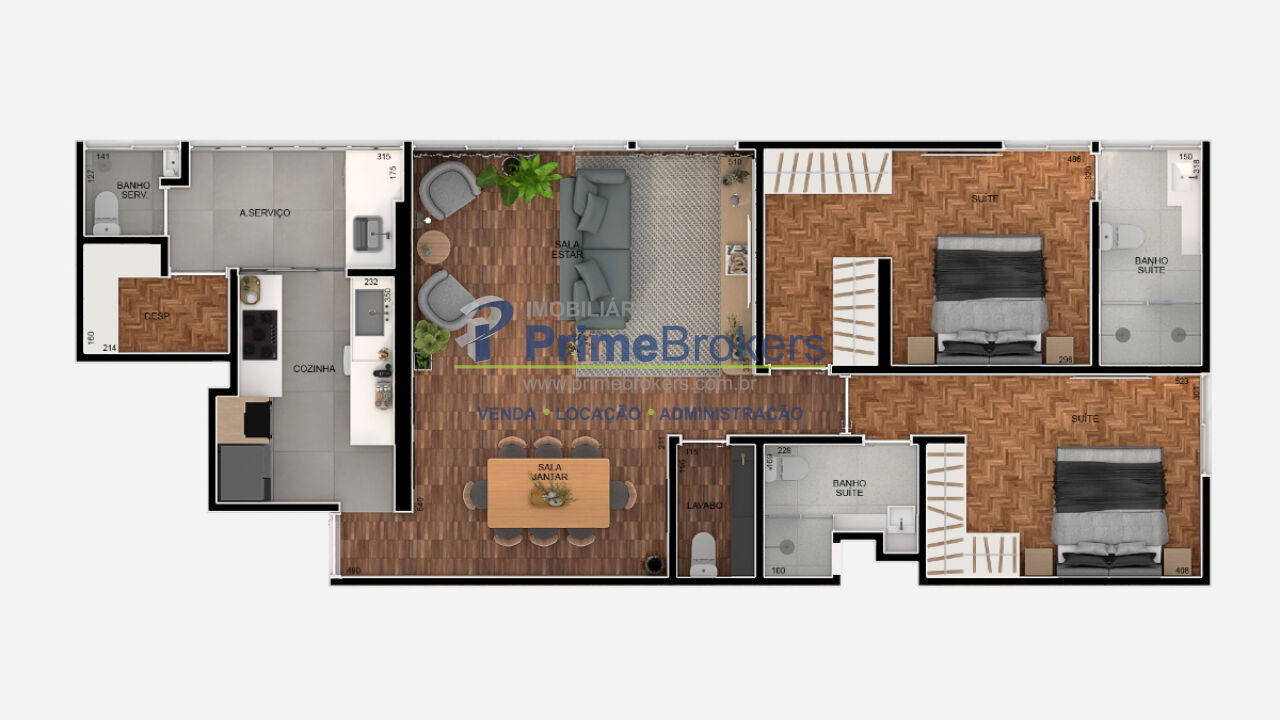 Área Social: Sala estendida, criando um ambiente integrado e perfeito para receber.