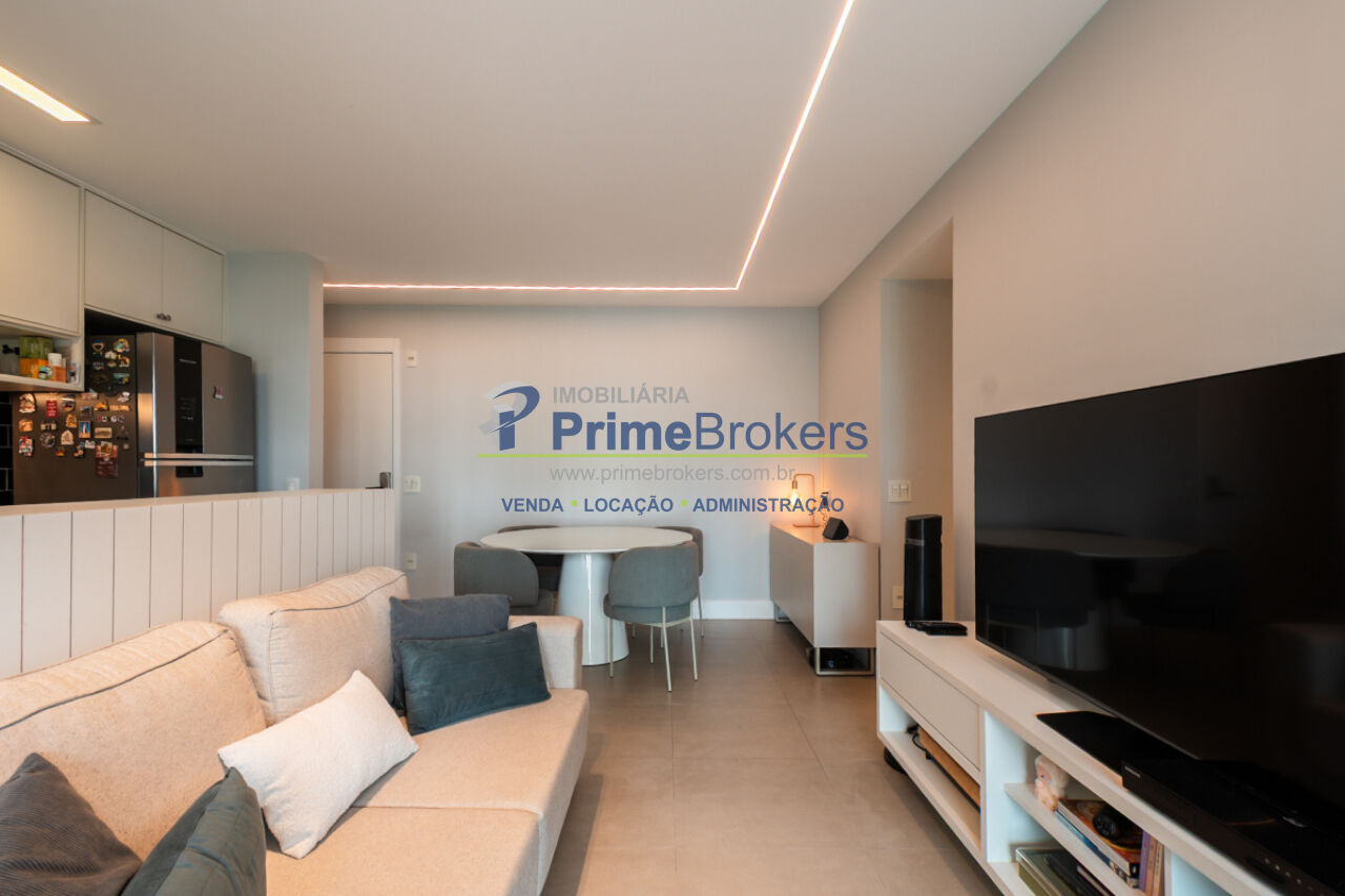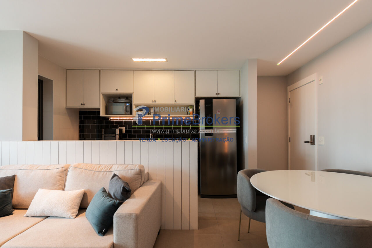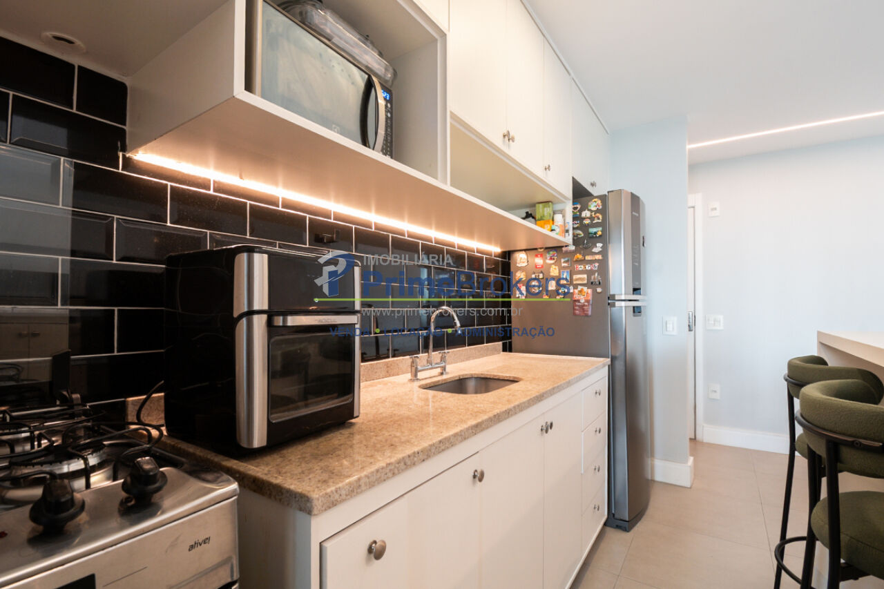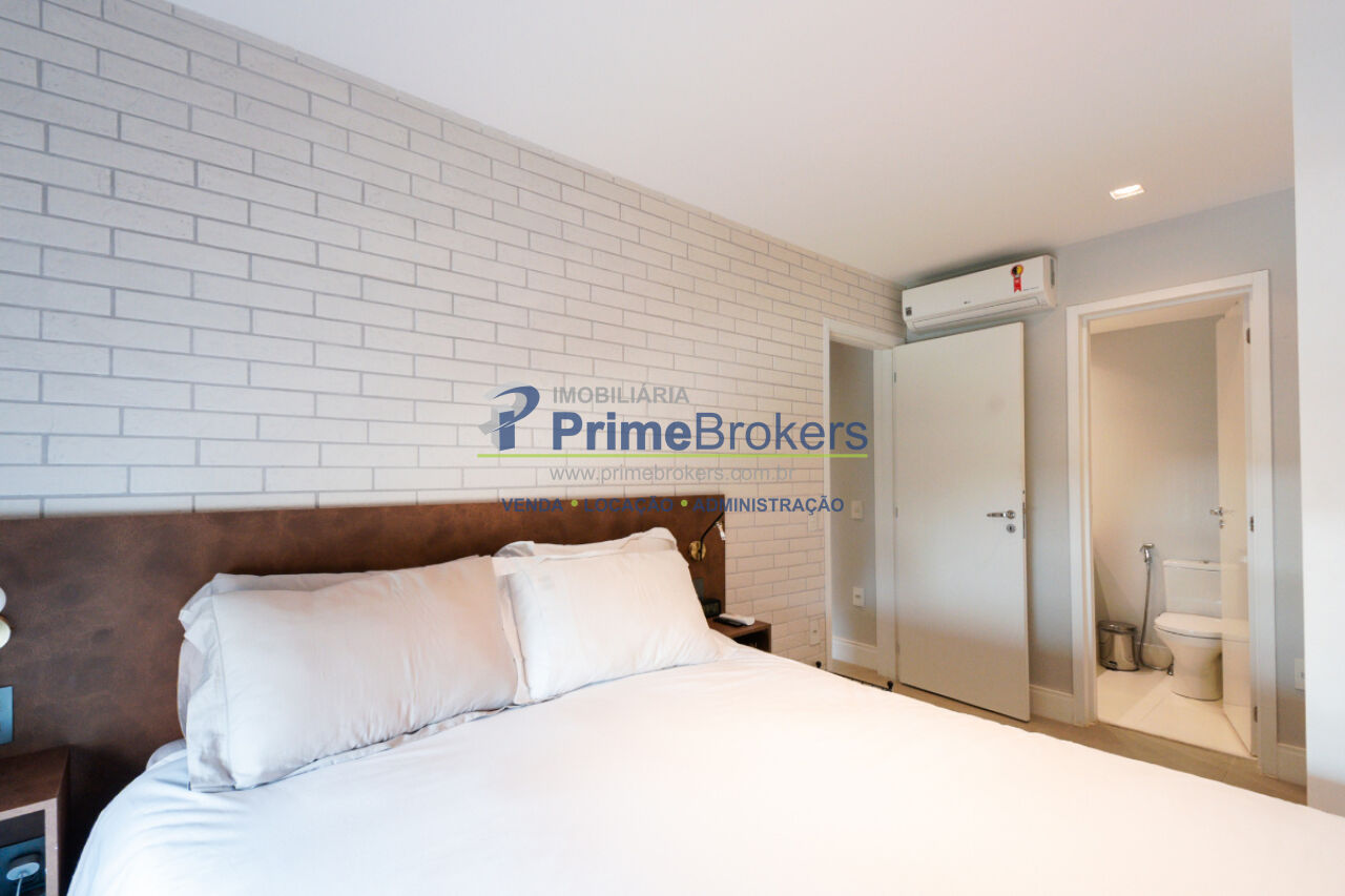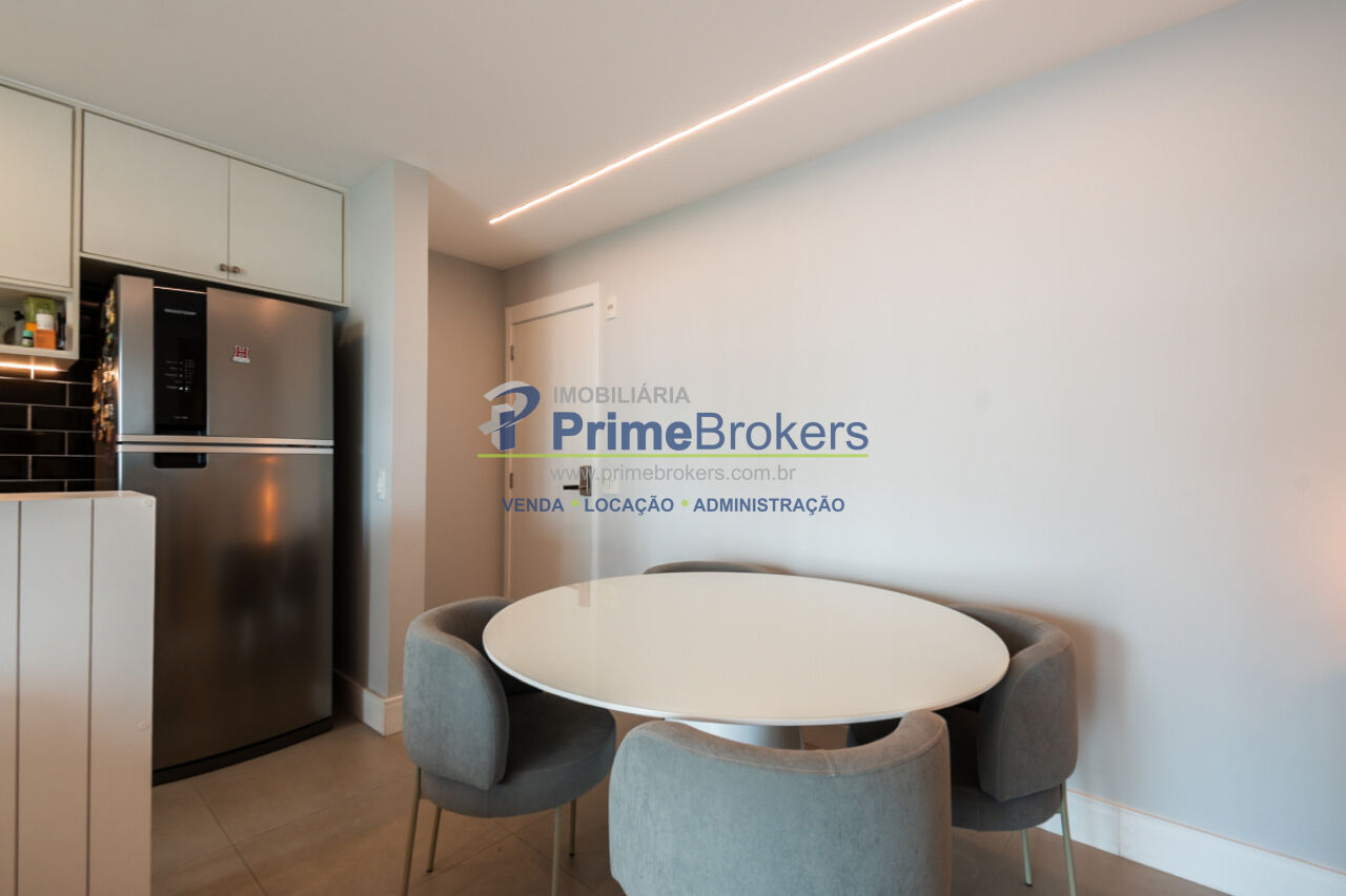 1 suíte, sacada, lavabo, área de serviço, móveis planejados, ar condicionado central, água quente, gás encanado, hall privativo, elevador privativo, vista permanente, alarme, mobiliado