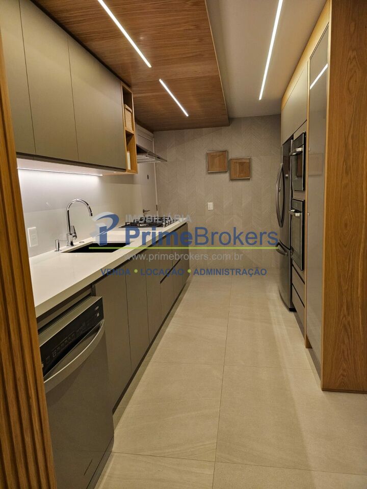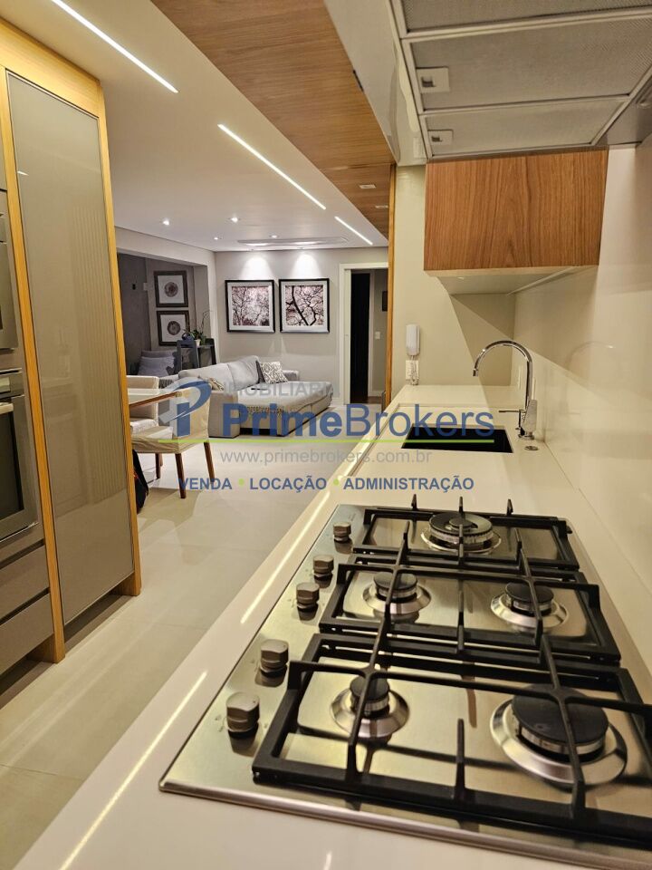 3 suítes, varanda gourmet com churrasqueira, dependência de empregados, depósito privativo, móveis planejados, piso de madeira e porcelanato, ar condicionado, lavabo, aquecimento a gás