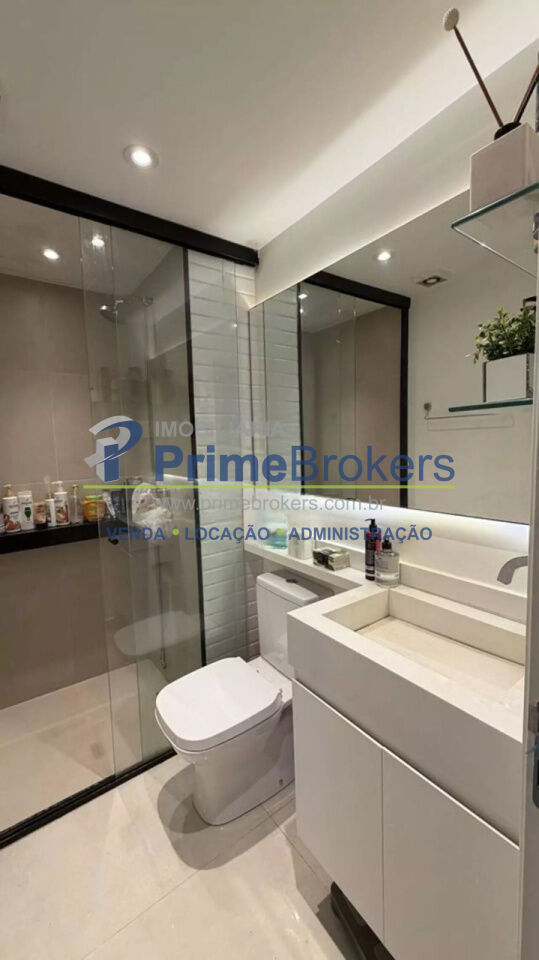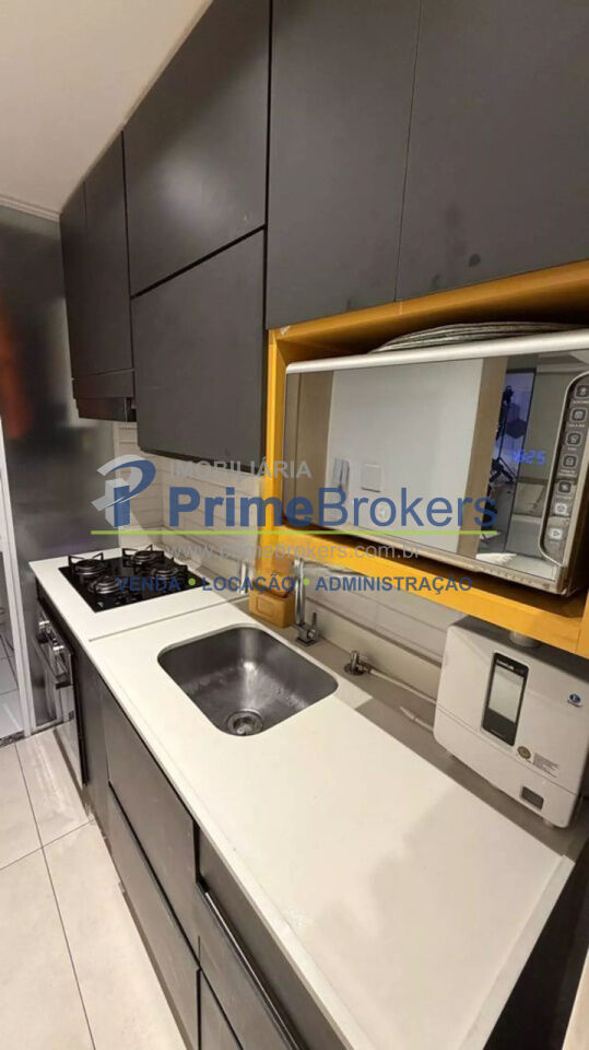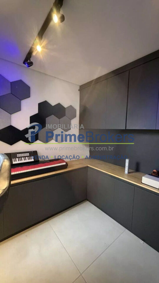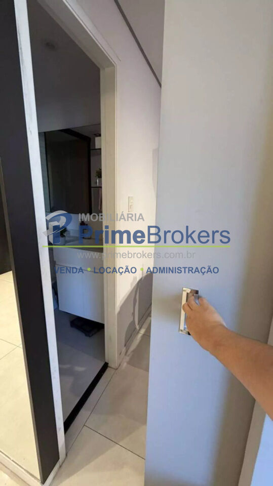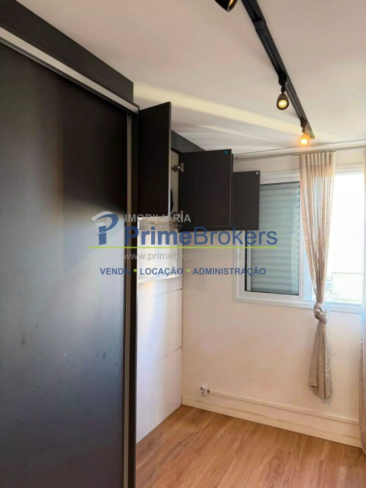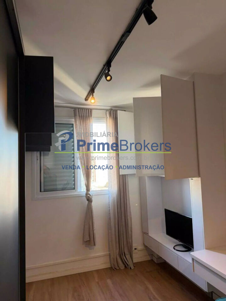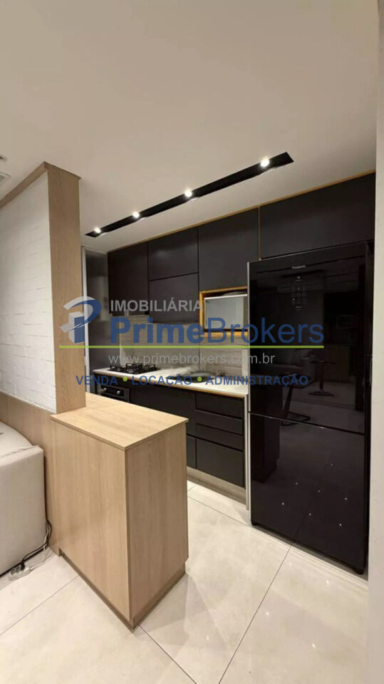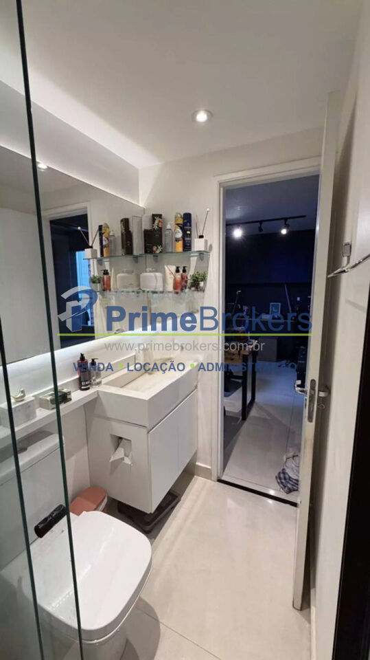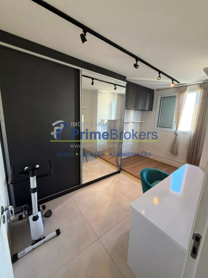 O imóvel conta com 2 quartos, sendo um deles configurado como escritório, além de 1 banheiro e 1 vaga de garagem. Possui ainda ar-condicionado, armários embutidos amplos com espelho, penteadeira e um escritório minimalista, tornando o apartamento ainda mais versátil e bem aproveitado.