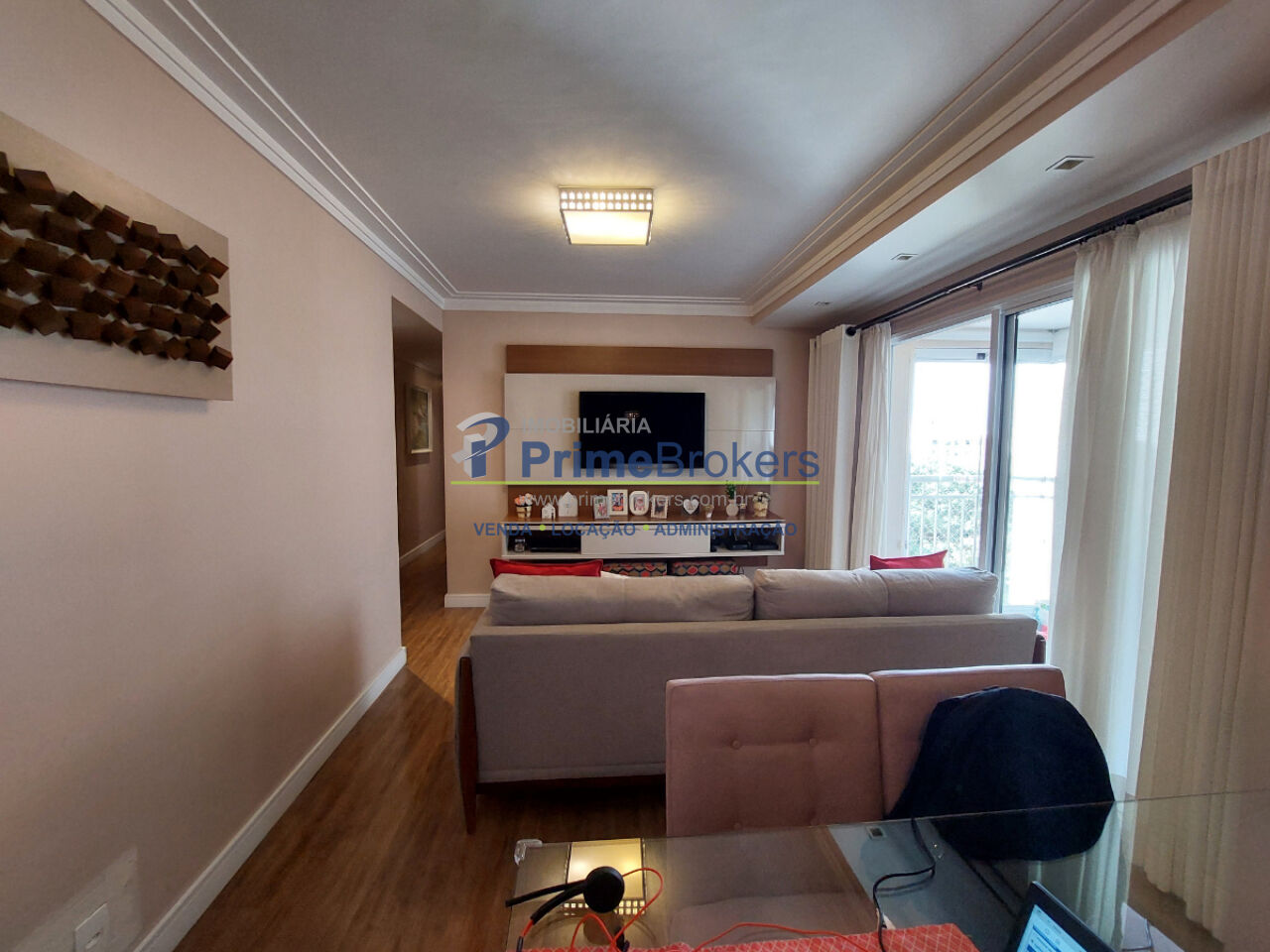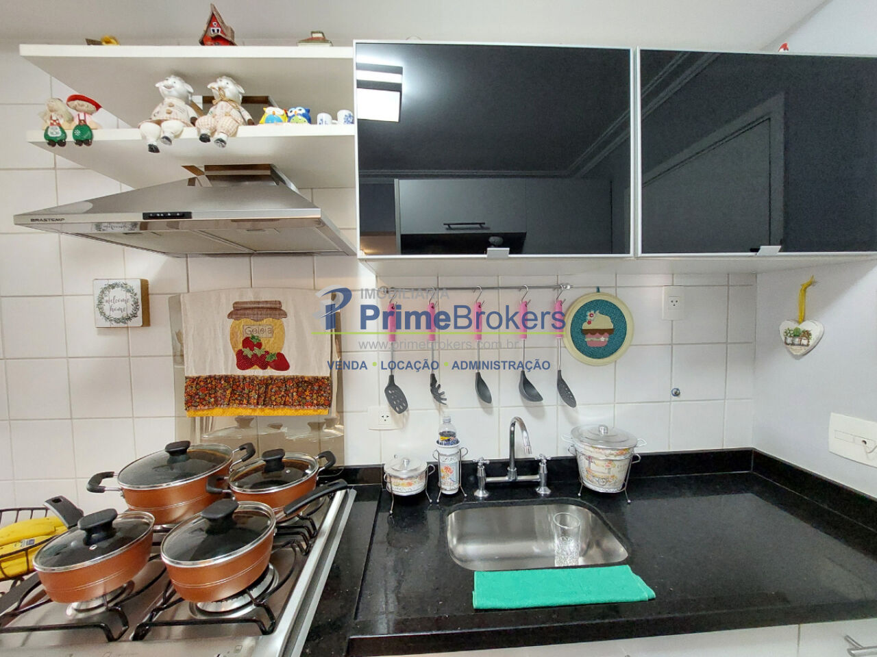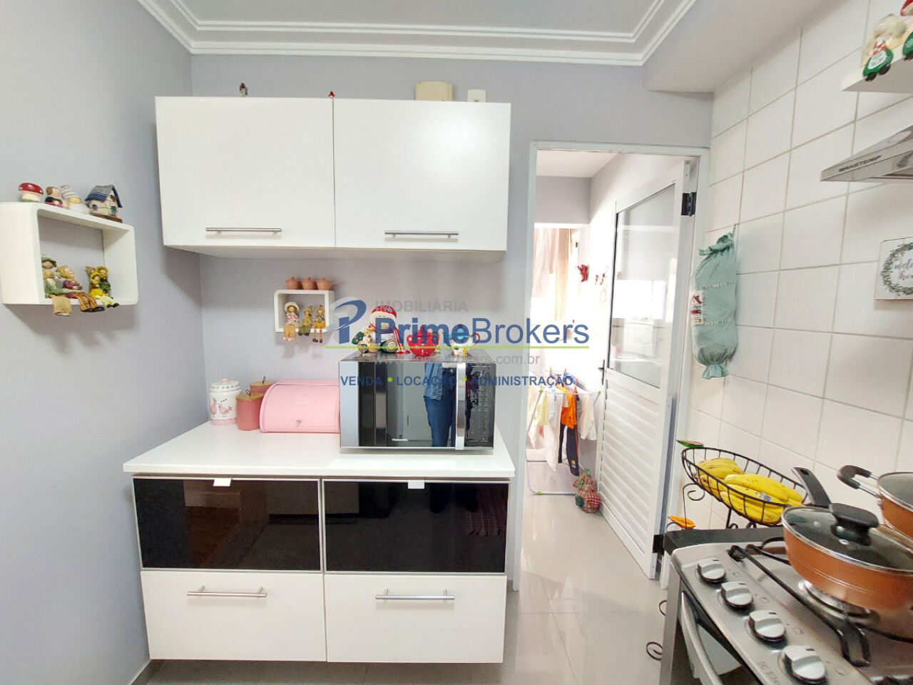 Varanda gourmet envidraçada com churrasqueira, 3 dormitórios (1 suíte), área de serviço com despensa, 2 vagas de garagem fixas, móveis planejados, infraestrutura para ar-condicionado