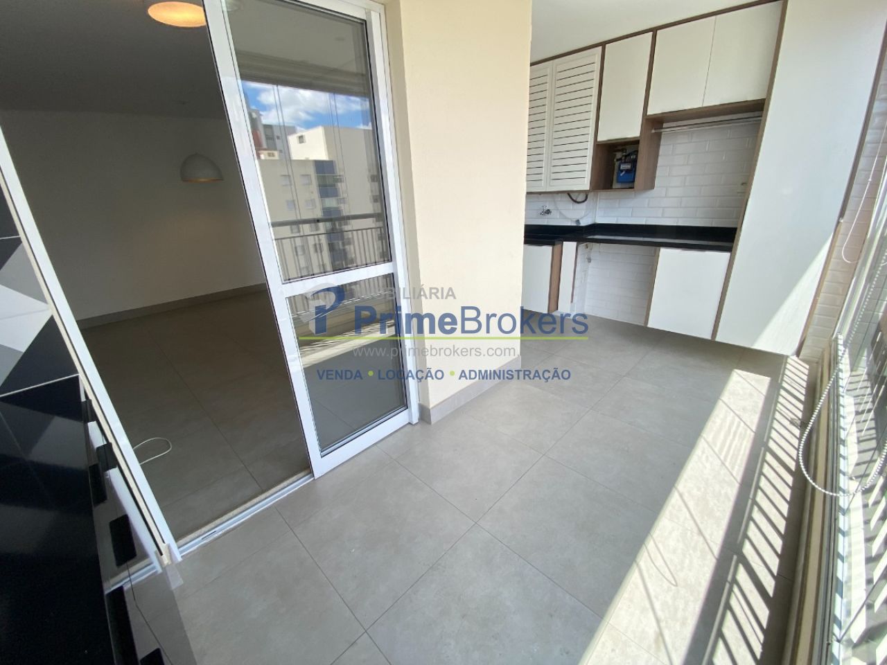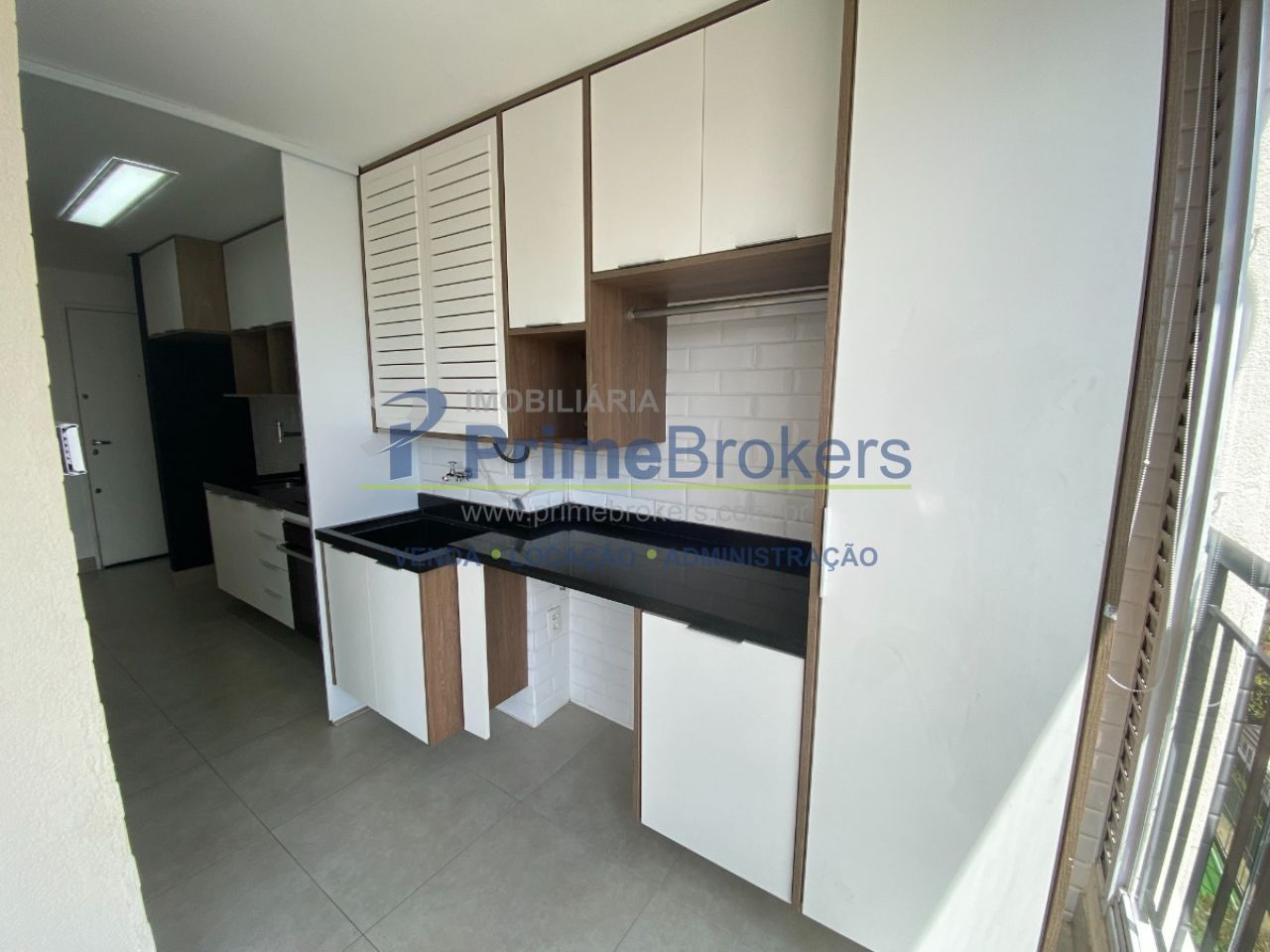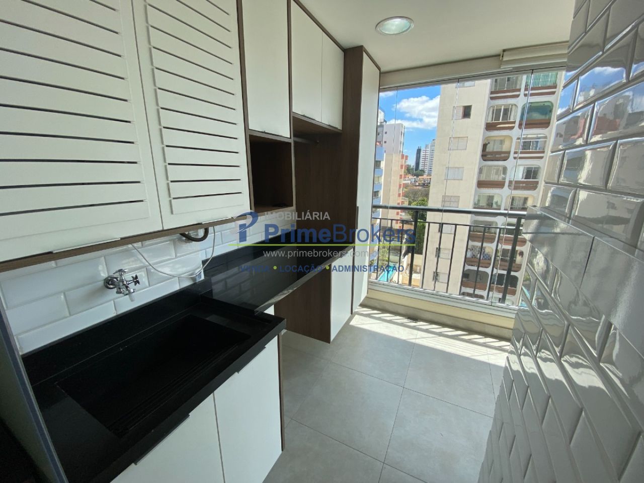 ? Lavanderia estendida até a sacada, com armários extras para organização