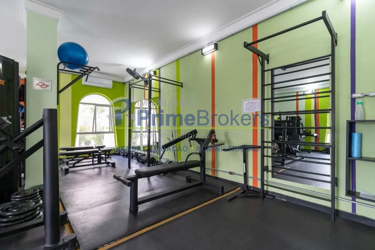 Condomínio fechado, portaria 24h, portaria 12h, piscina adulto e infantil, espaço gourmet, churrasqueira, sala de ginástica, salão de festas, sala de TV, salão de jogos, playground, jardim, zelador