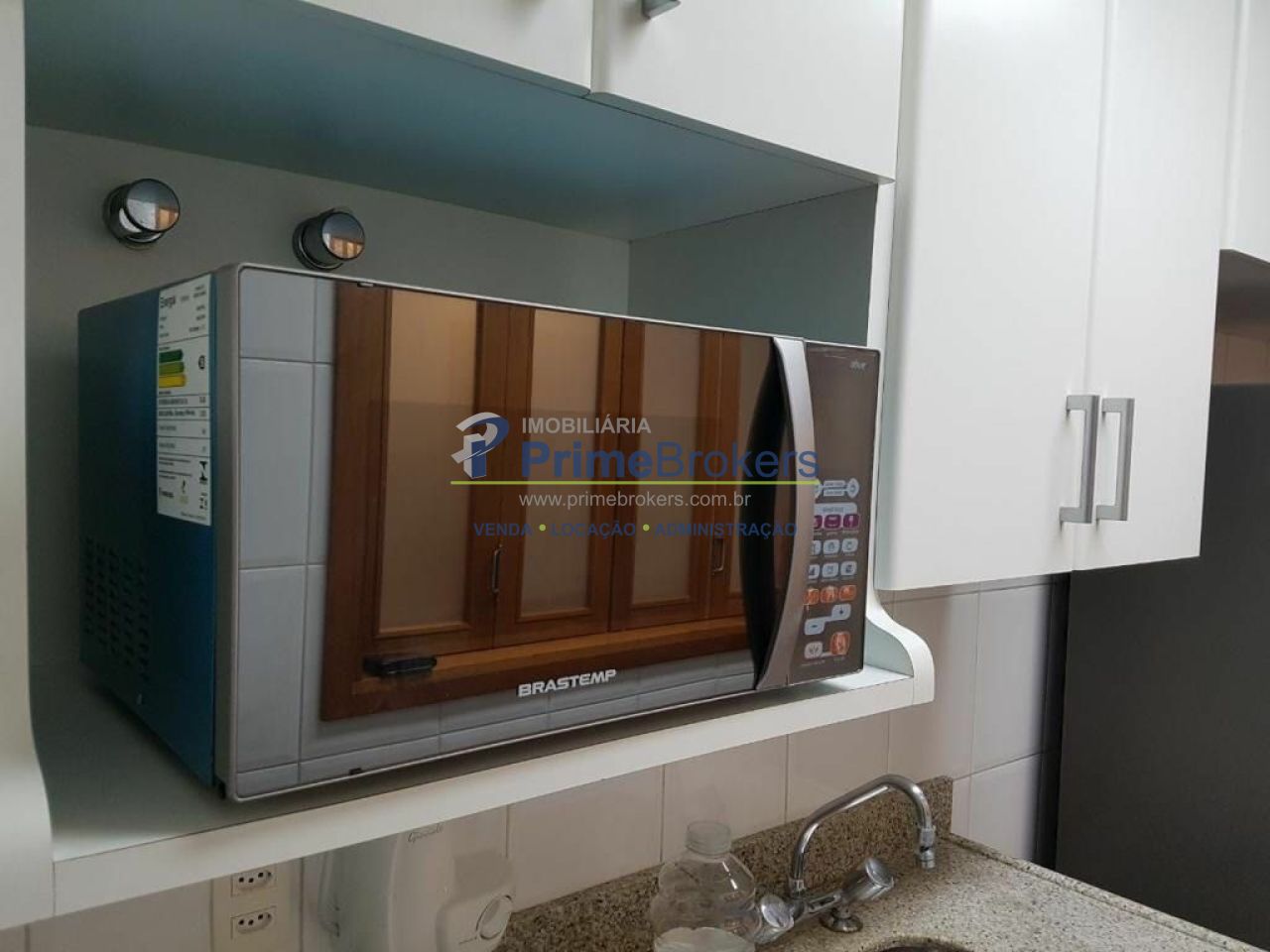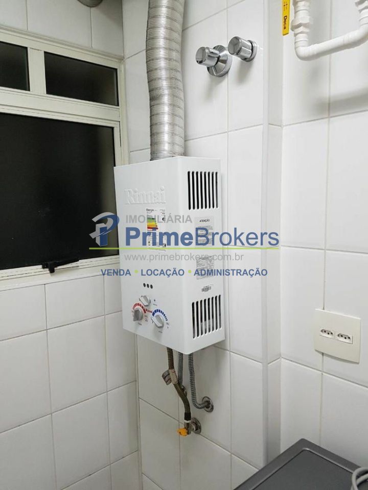 Apartamento mobiliado com ar condicionado, geladeira, microondas, fogão, cama, televisão, armários, depurador, máquina de lavar e secar, etc