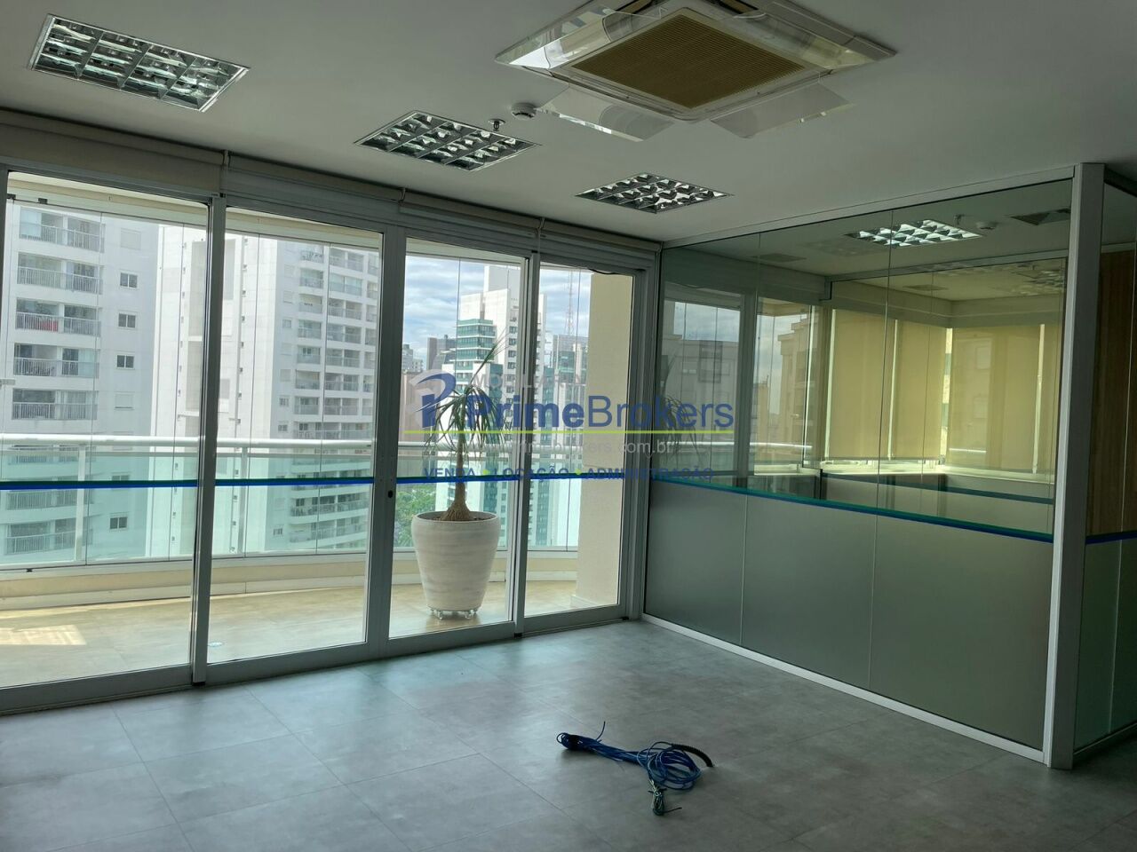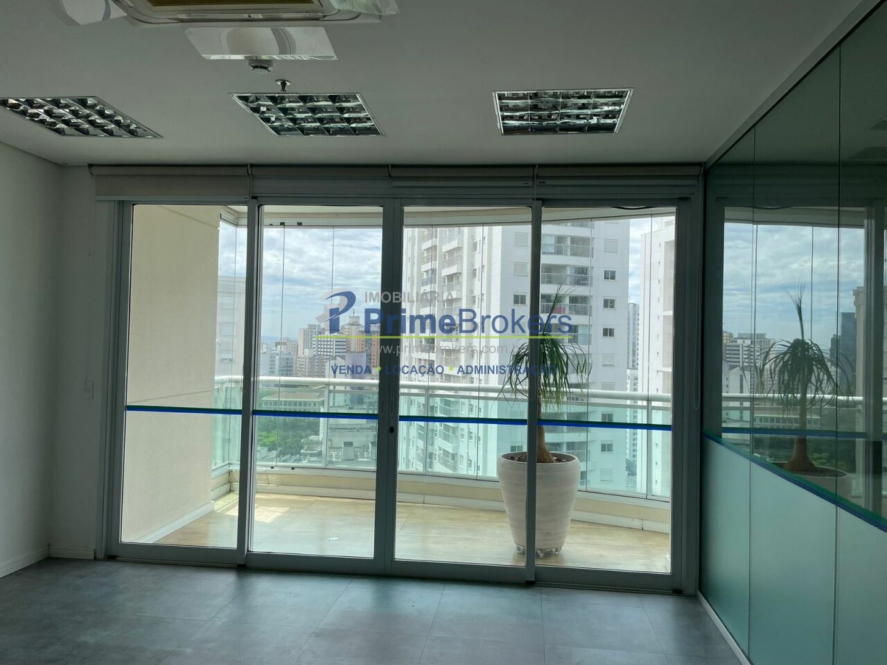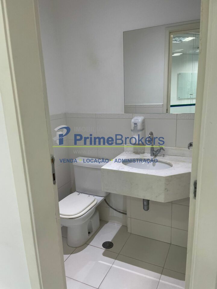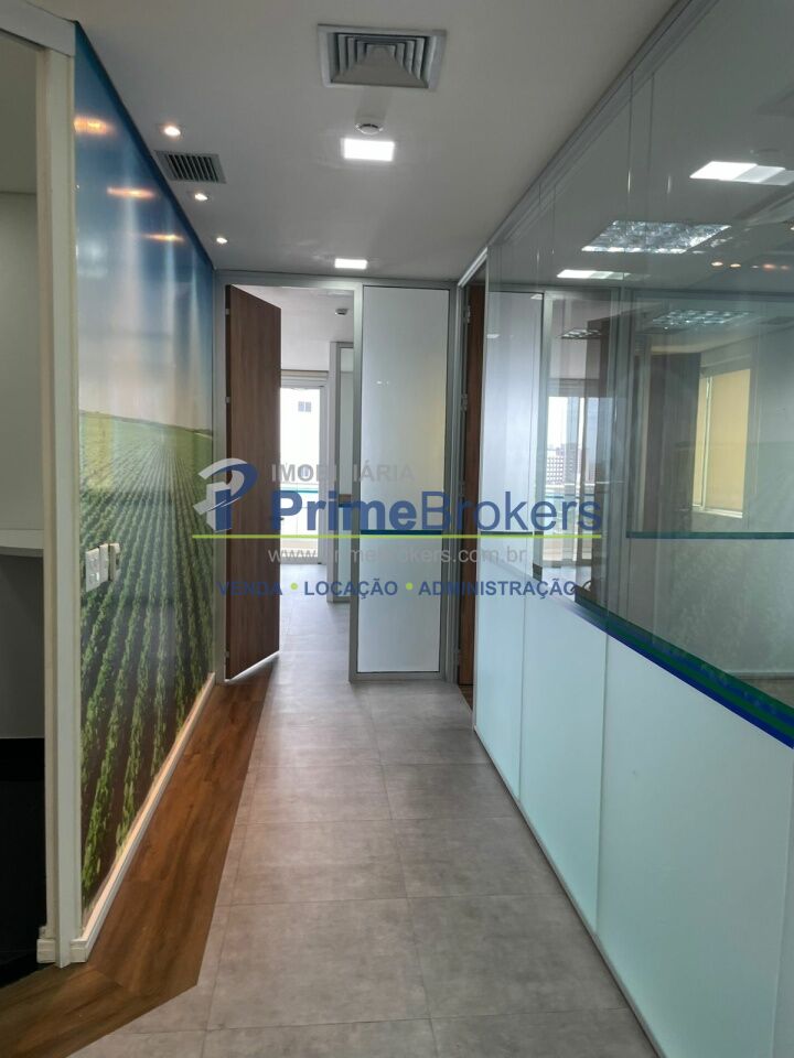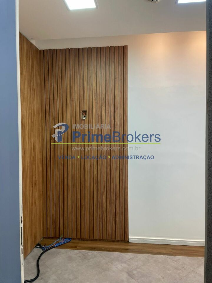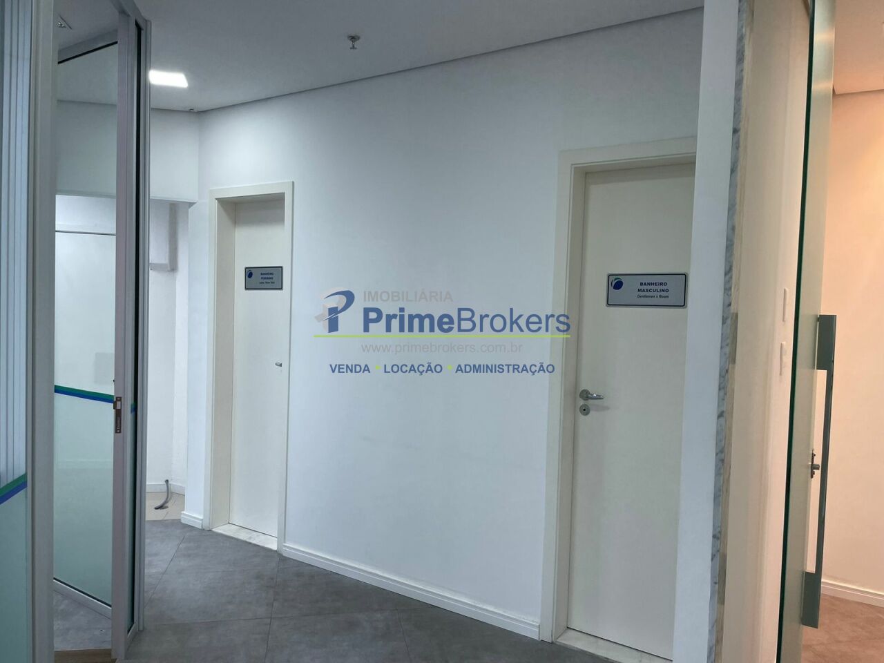O espaço está dividido em vidro, oferecendo 6 salas independentes, além de recepção, copa, varanda e área técnica para ar-condicionado. Conta com 2 banheiros (masculino e feminino), 1 banheiro adaptado para PCD, e um pequeno depósito na garagem.