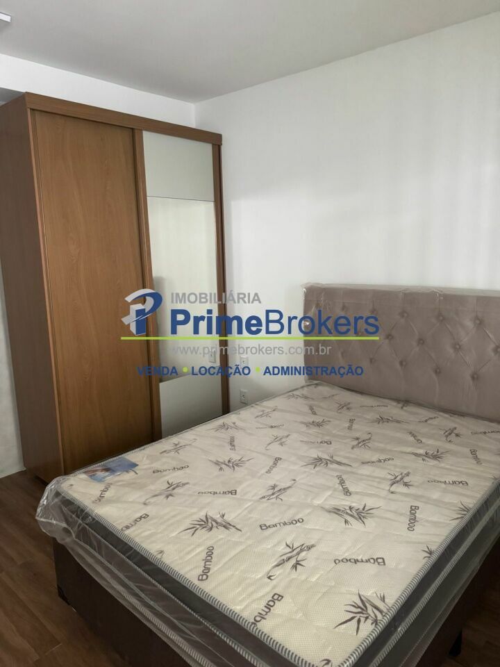 Totalmente mobiliado, equipado com: cama de casal, guarda-roupa, mesa com cadeiras, TV e geladeira.