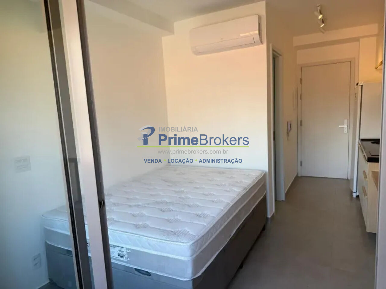 Mobiliado e Equipado: Armários planejados, cama box casal, TV 43?, ar condicionado, cooktop, geladeira, micro-ondas, persiana blackout e espelho.